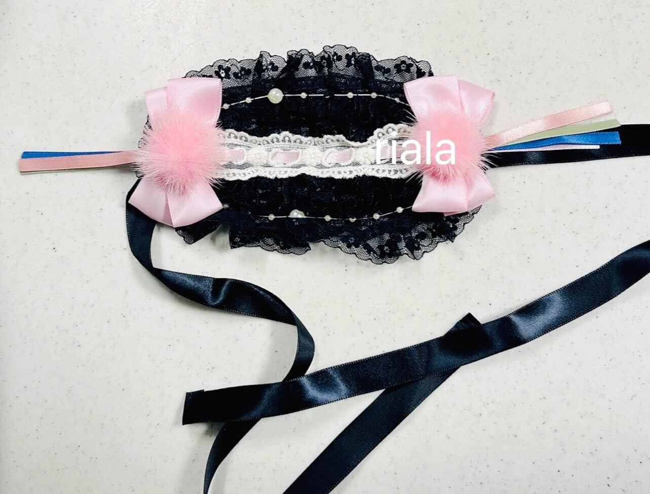 ヘッドドレス(平置き):白・桃 横約20cm×たて約14cm