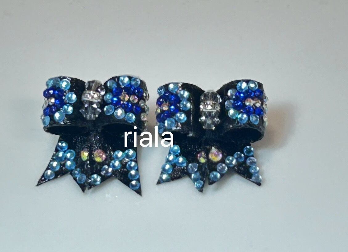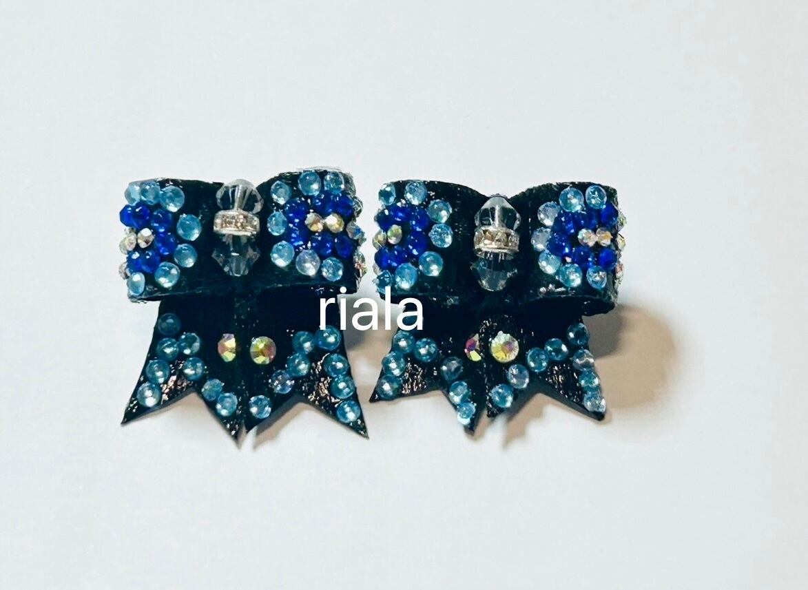 ブルーとスカイブルーのラインストーンがリボン全体に施された華やかなリボンです。